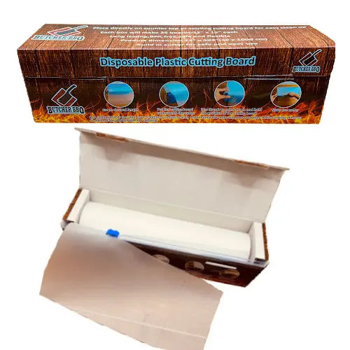 Introducing Butcher BBQ's Disposable Plastic Cutting Board Sheets - the ultimate kitchen companion for all your meal prep adventures. Designed for backyard chefs, caterers, steak cookers, RVers, and weekend warriors, these versatile mats are large, flexible, and make your life easier and more exciting. Say goodbye to bulky cutting boards and cross-contamination worries during your outdoor escapades. With quick clean-up and durability, these sheets fit neatly into your cabinet, ready to be deployed whenever the cooking bug bites. Let your creativity flow freely as you embark on culinary adventures both indoors and outdoors. Elevate your cooking experience with Butcher BBQ's witty charm and clever design. Don't settle for ordinary - order today and let the culinary magic begin!