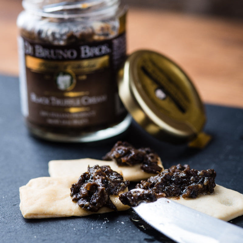 • Di Bruno Bros. Black Olive Tapenade (4.6 oz) - Salty, silky black olives mashed into a spreadable jam that’s just plain amazing. Smear atop a crusty piece of baguette and enjoy each heavenly bite of umami goodness.