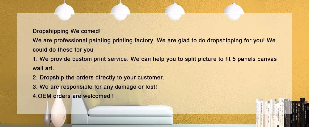 Production Description · Polyster canvas Printing with 0.5cm White Board · Environmental friendly giclee ink · Frame not included · Production with highest standard · Please make sure to provide the right shipping address to ensure successfully delivery. · If there is any issue about the products or delivery, please feel free to contact us. Due to different lighting effects between computer monitors,cell phone, the color of objects is little different from show pictures. Home Decor:Living Room ,Kids Room, Bedroom, Kitchen, Study Room ,Office , Bar and so on