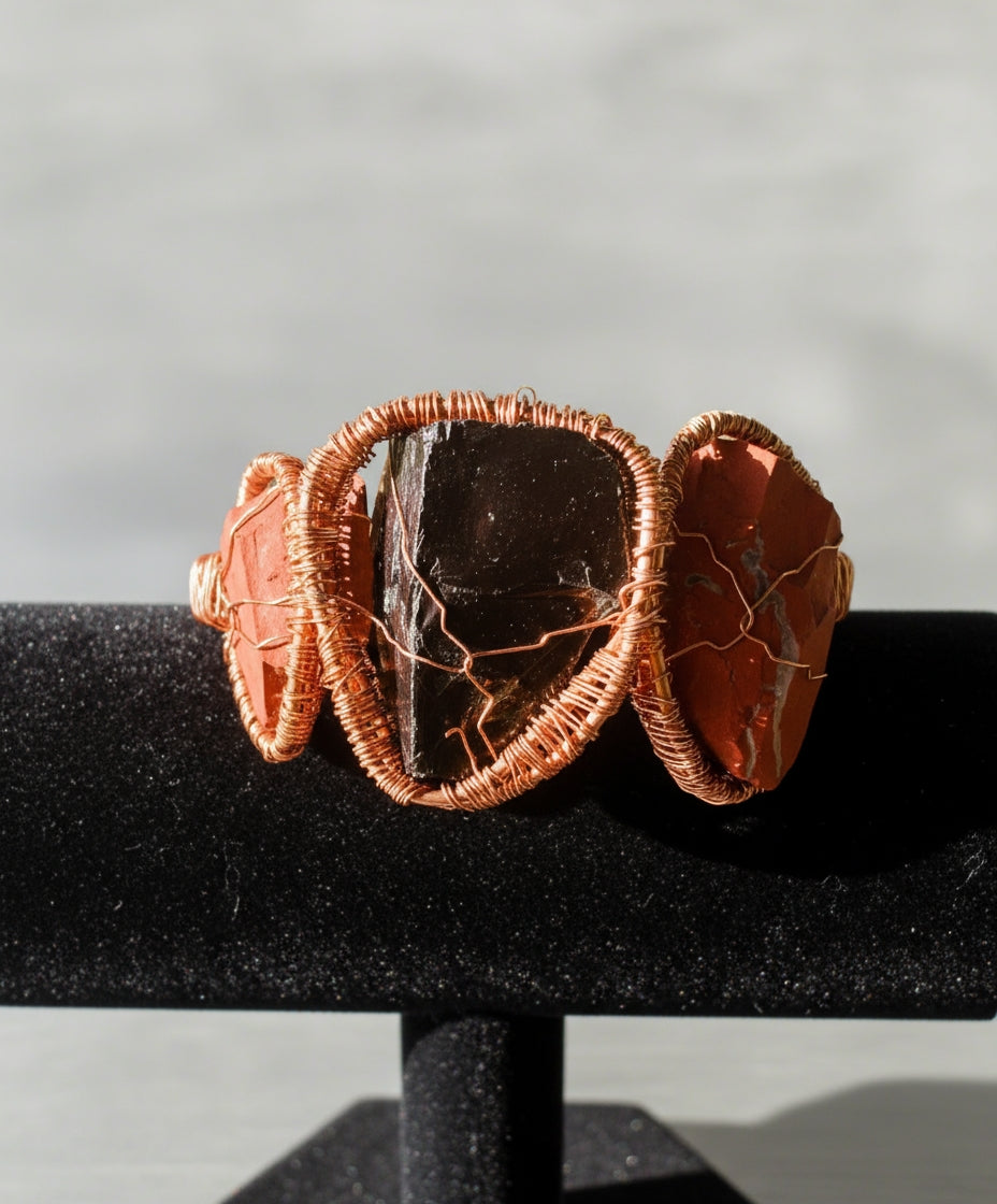Black Obsidian and Red Jasper Chunky Raw Crystal Bracelet