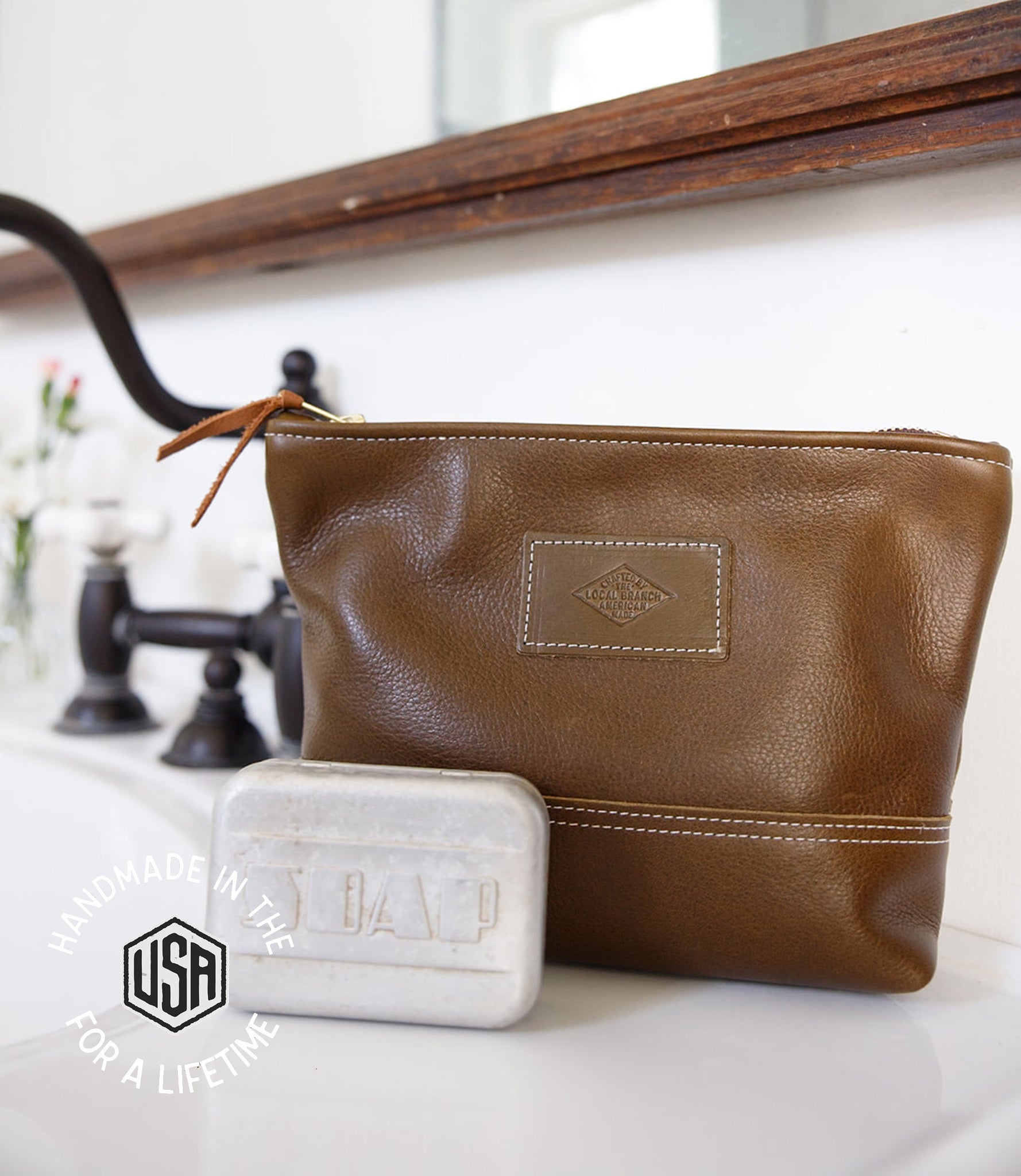 This pouch is crafted by small makers, The Local Branch, out of their Upstate NY workshop.