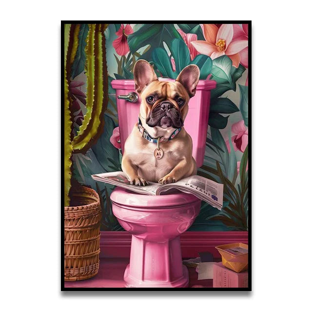 - Funny and Cute: This painting features a cat sitting on a toilet reading a newspaper, sure to bring a smile to your face.
