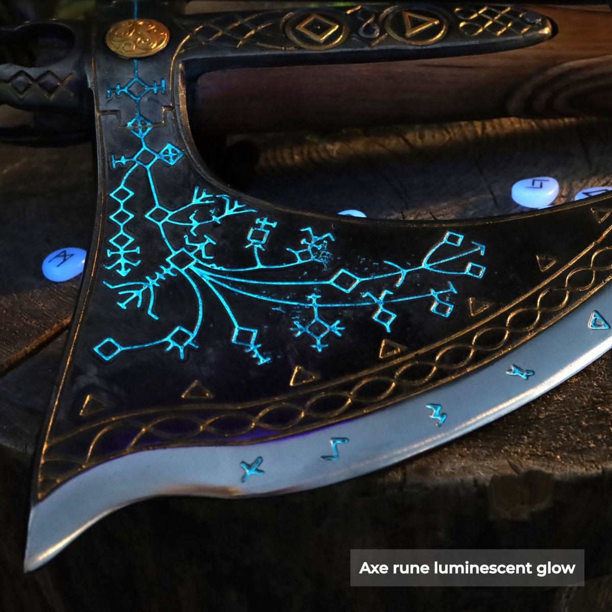 Handcrafted Leviathan axe with glow in the dark runes