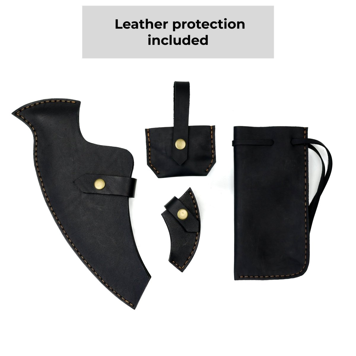 - Gives your display a cleaner, more refined look — the four-piece leather setup adds style and keeps the axe well-protected.