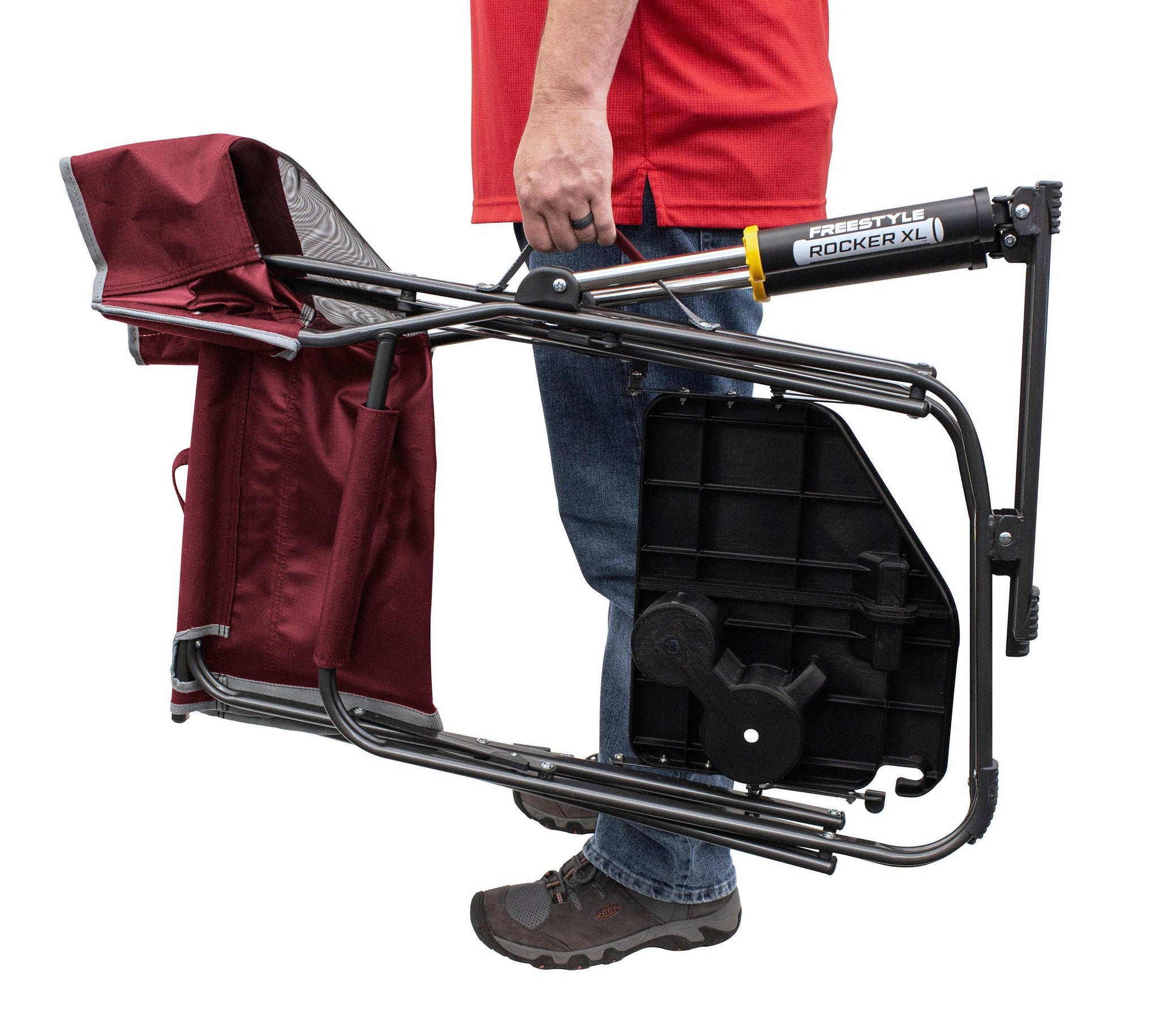 Compact: Portable chair measures 26.4 by 25.6 by 34.8 inches when open with a seat height of 20 and folds to 25 by 4.9 by 34.8 inches; 14.5 pounds